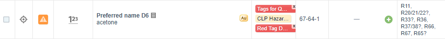 Multiple preferred names have been created for the same material. The preferred name 1 (Acetone) was originally assigned to the material's Gold SDS. The next step is to change the preferred name by re-assigning the preferred one.