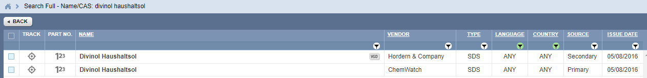7. Click on the "Document Name" of the SDS from the document list alongside the Vendor.