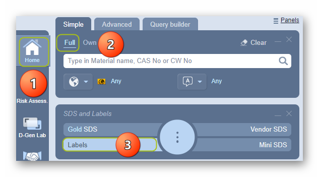 . - Click the Full option in the Search panel to set the database path to the Full collection to look up for the Vendor SDS from the Chemwatch full database.